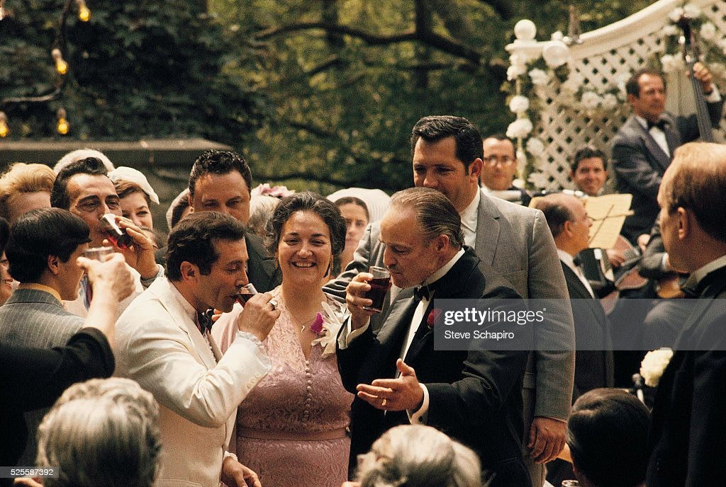 [As a personal rule, I try not to post pics containing young kids in them. I Google image searched for “godfather” and “wedding”. I got something very close to the real thing, so here you go.]